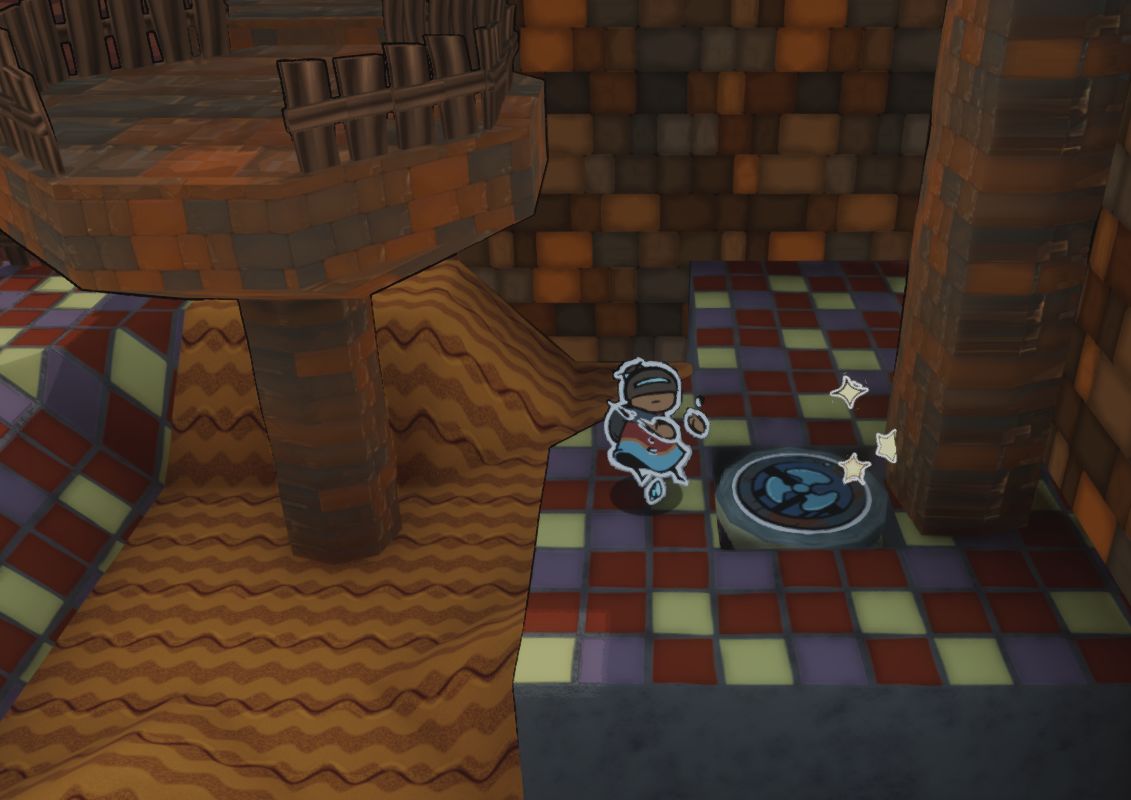 Traverse through the temple using stickers to solve puzzles.